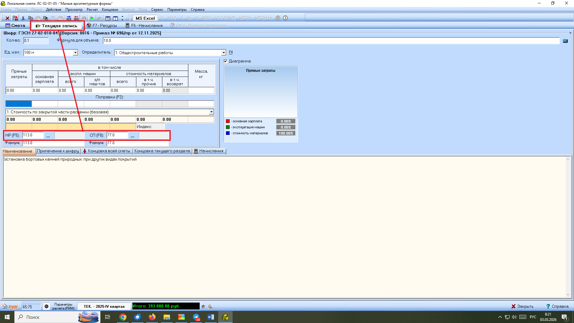 27.03.2026 12:21:25Два варианта нормативов НР и СП на один вид работ. Как применить в РИКе? Такая ситуация - далеко не редкость, рассмотрим ее на конкретном примере: Сдали смету на проверку в экспертизу, вернулась с замечанием: на позицию «Установка бортовых камней» применить нормативы НР и СП как для благоустройства: НР 113%, СП 77%