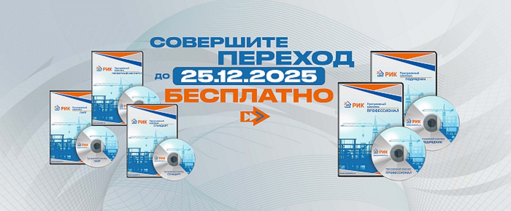 Предлагаем воспользоваться до 25.12.2025 специальным предложением для перехода на версии ПК «РИК» «Проф» или «Подрядчик» не оплачивая стоимость перехода! (Оплачивается только продление Лицензии выбранной версии)